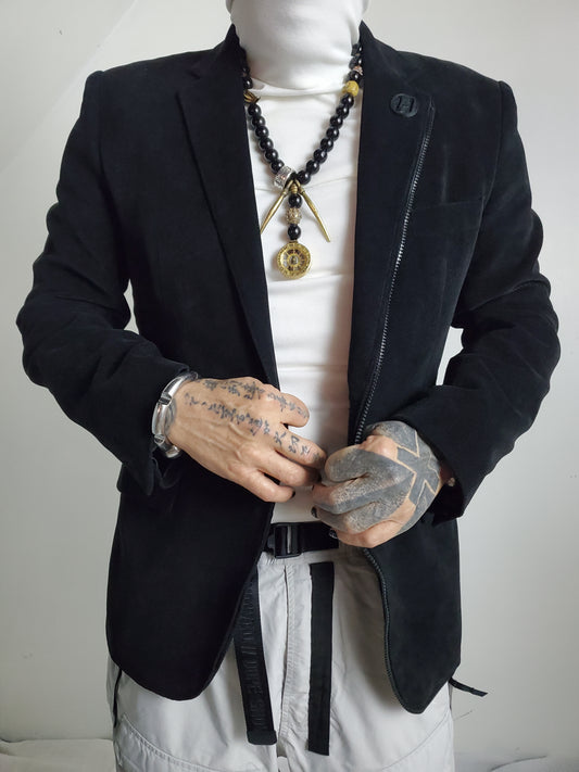 Ces collections de 27 exemplaires sont créées à partir de vêtements de seconde main, recousus et restaurés en fonction des besoins de chaque pièce, puis sérigraphiés et embellis afin de devenir des pièces uniques