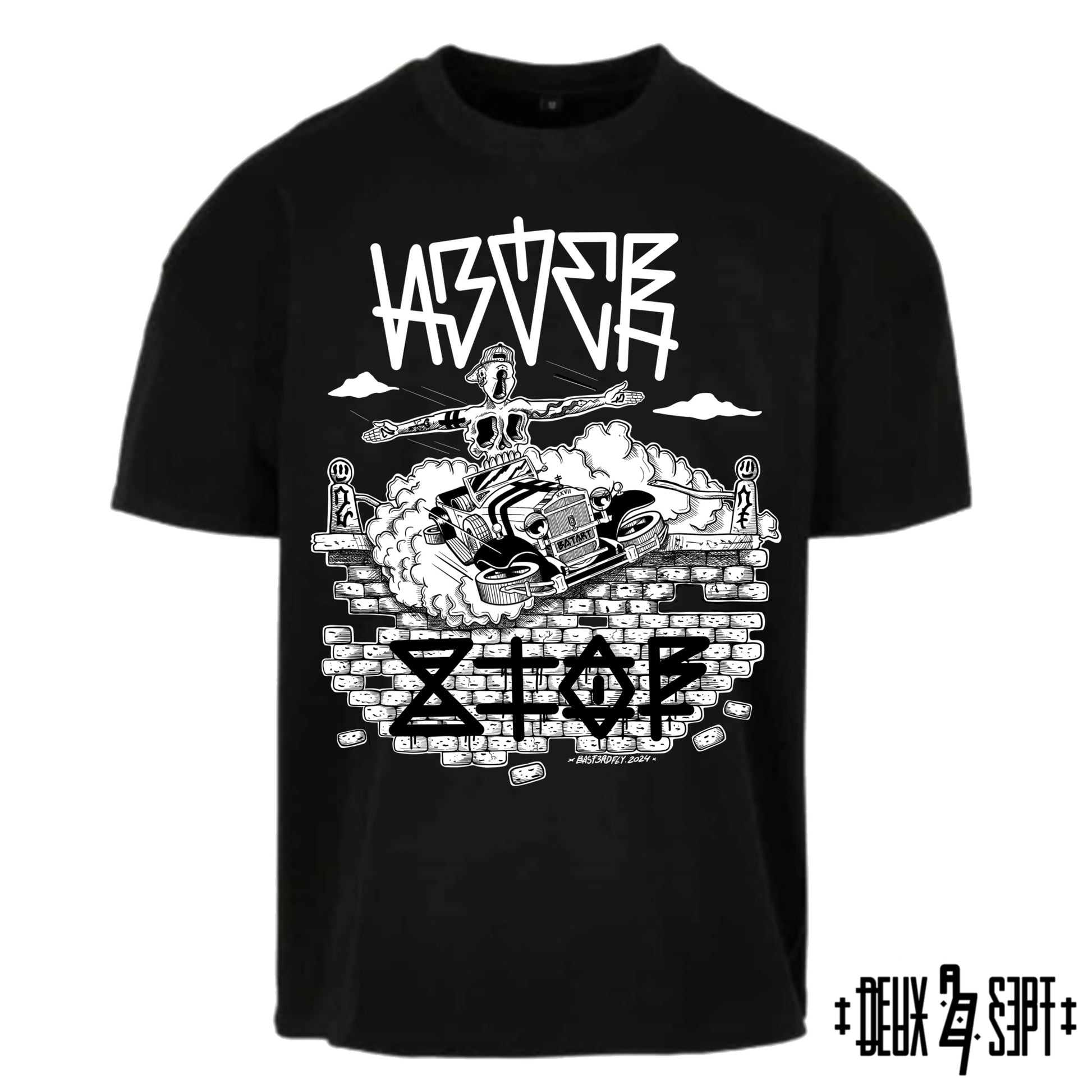 Le devant du T-SHIRT arbore le visuel principal avec le message ”NEVER STOP”, écrit en NOVALT, la calligraphie unique de BAST3RDFLY: @novalt_letters