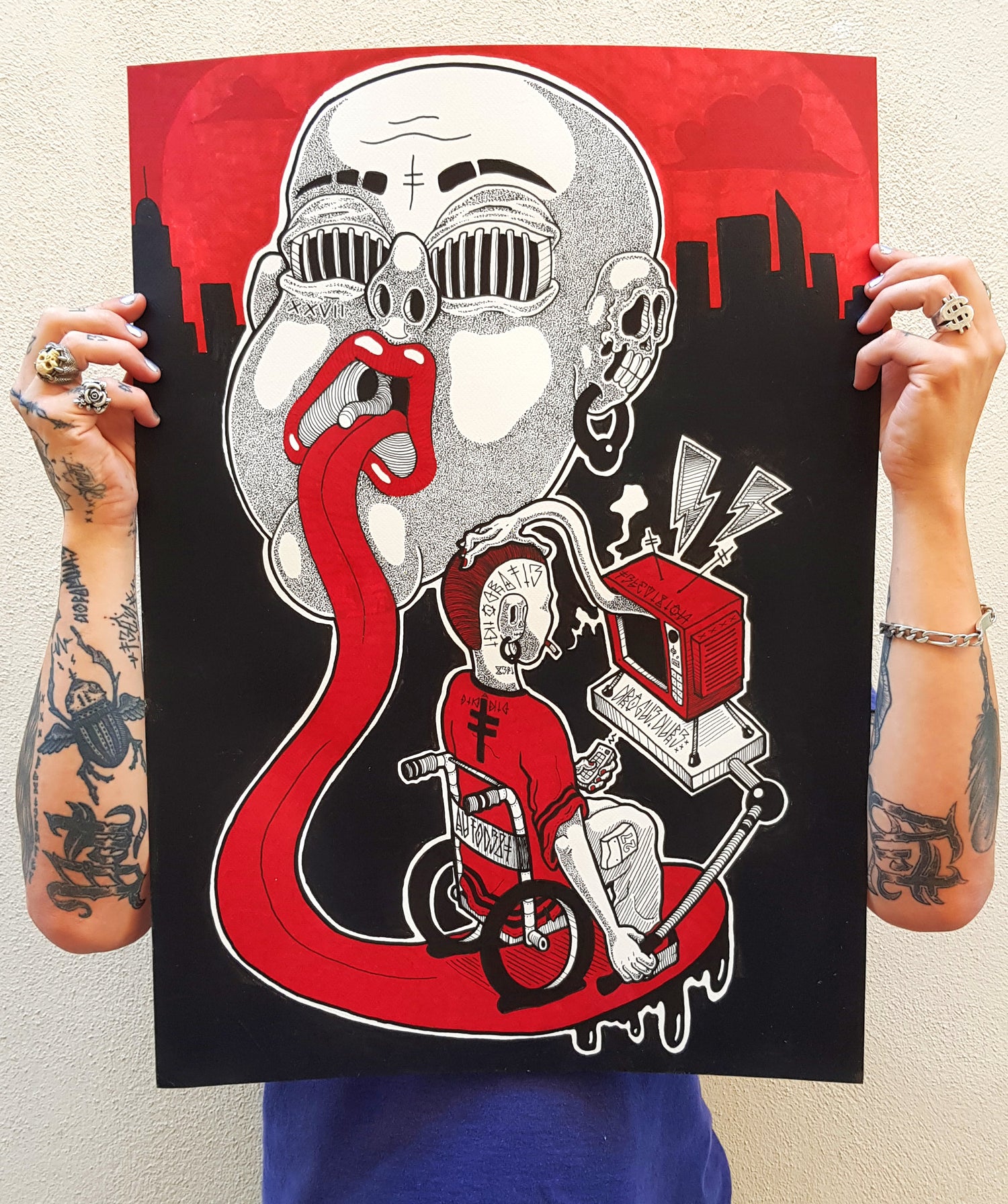 BAST3RDFLY est un artiste pluridisciplinaire en perpétuelle évolution, exerçant les métiers de peintre, d’illustrateur et de tatoueur.